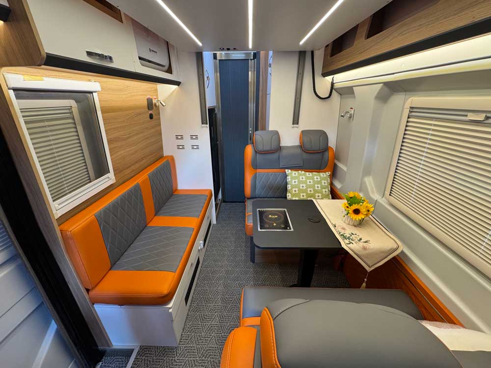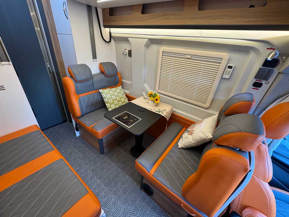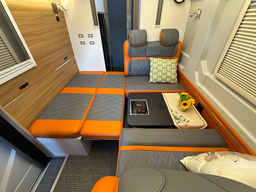 清风15号后厨卫房车,大通V90加长轴超高顶B型房车,后厨卫布局,6座,三区分离,独立厨房卫生