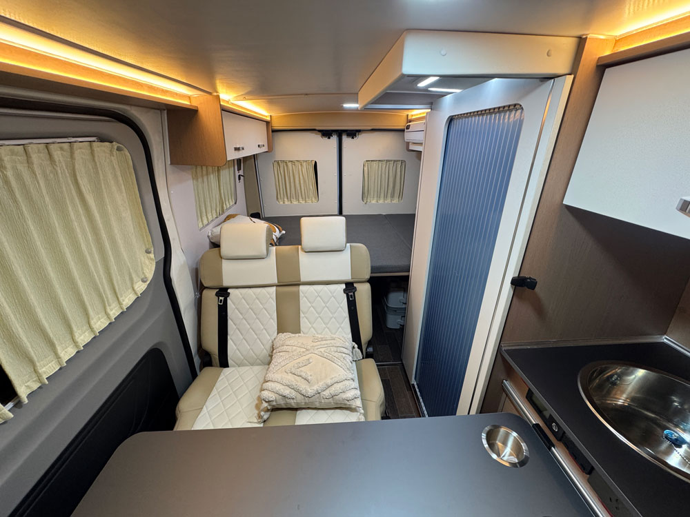 舜宇房车-宝石蓝大通V90加长轴高顶4座旅居车交付客户